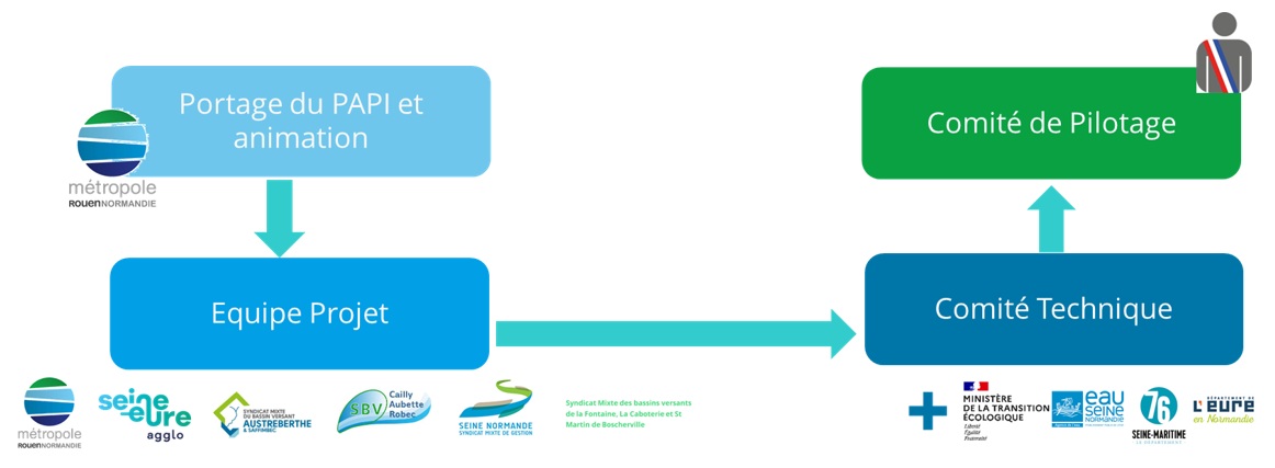 La gouvernance du PAPI Rouen-Louviers-Austreberthe réunit plusieurs instances :